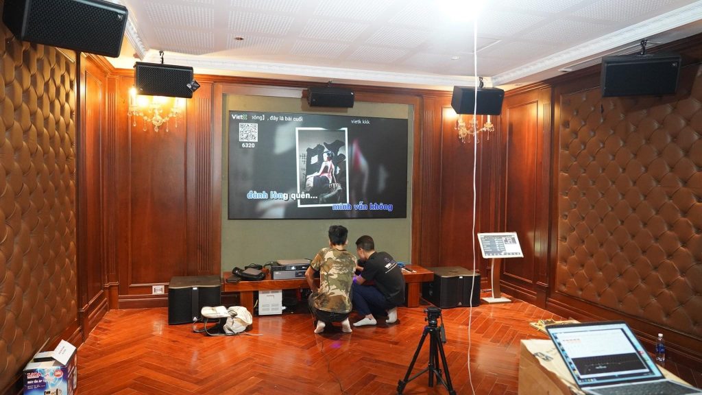 Không chỉ thỏa mãn nhu cầu giải trí về nghe nhạc, hát karaoke Vinh Audio 77 còn thiết kế dàn loa cao cấp để xem phim. Tiêu biểu đó là hệ thống Cinema 7.2 cho anh Phương ở Cầu Giấy, Hà Nội.