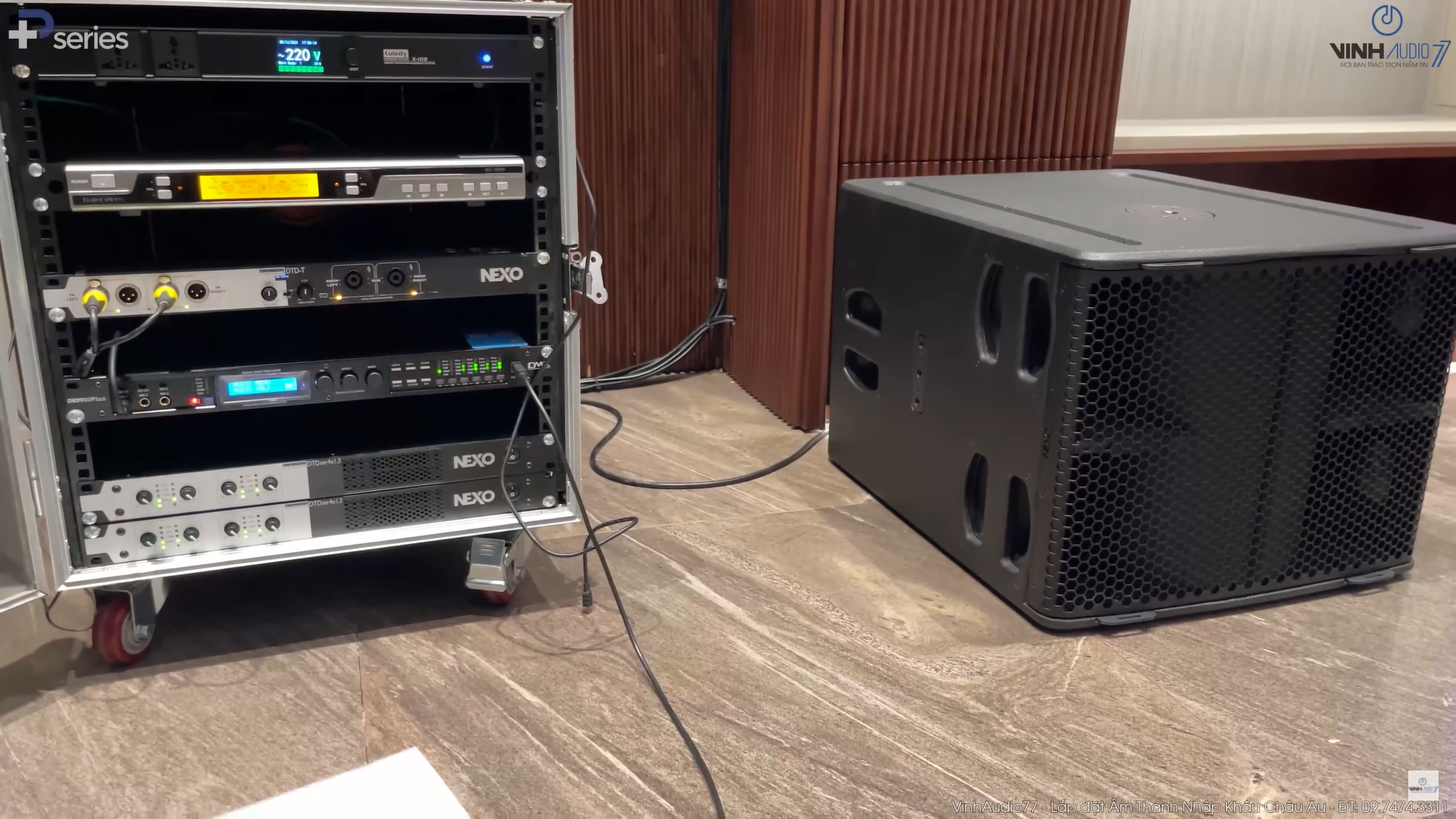 Sub NEXO L15 nổi tiếng là dòng sản phẩm có khả năng tái tạo âm trầm chân thực ấn tượng nhất. Với kích thước 550 x 439 x 650 mm có thể thoải mái lắp đặt, bố trí sản phẩm. Ván gỗ ép bạch dương được uốn cong tùy chỉnh có độ dày 15mm làm vỏ thùng mang đến sự sang trọng cho ngôi nhà của anh Hà. Tạo ra một thùng loa chắc chắn, bền, nhẹ với chất lượng âm thanh hoàn hảo.
